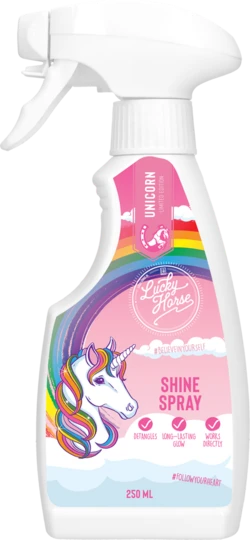Laat je paard er altiijd fantastisch uitzien met Lucky Horse Unicorn Shine Spray! Perfect geschikt voor wedstrijden of presentaties dankzij de volgende eigenschappen: