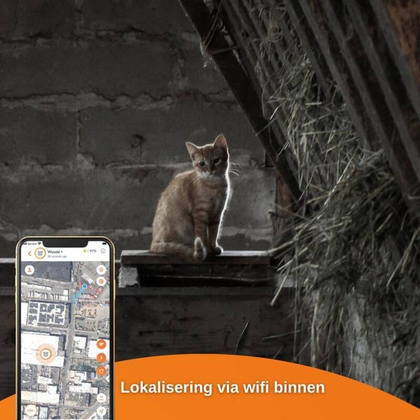 ZAKLAMP - De Weenect XS GPS tracker voor katten heeft een ingebouwde zaklamp die kan oplichten in het donker. Katten jagen en sluipen graag 's nachts, dus met deze functie kan je ze in het donker vinden.