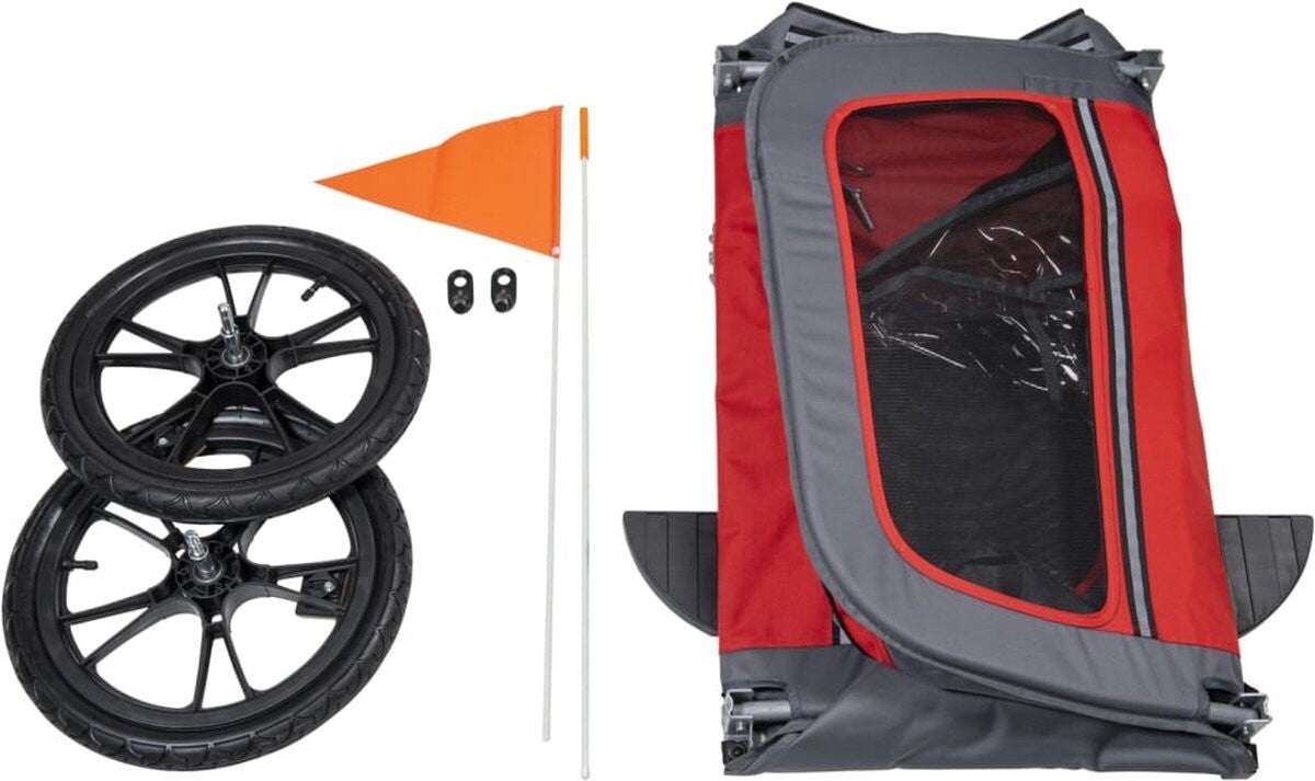 AB45001: AB TRAVEL Bicycle Trailer for Dogs Red/Grey-L 130x80x90cm EAN 5400956450013
